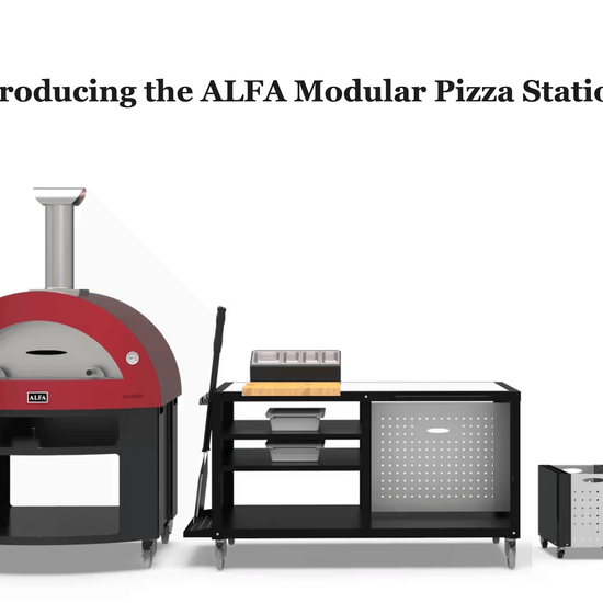 The ALFA™ Modular 160 Pizza Cooking Station works as a standalone table for the ALFA™ pizza ovens (or any other brand of pizza oven that's no deeper than ~31") or to sit side-by-side with the Modular Cooking Station 80. Choose between a Stainless Steel or White Corian top (see product images), and various accessories to customize your pizza-making station.